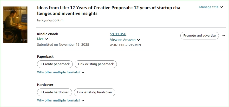 아마존 한국에는 부크크에 등록이 되어 있습니다.